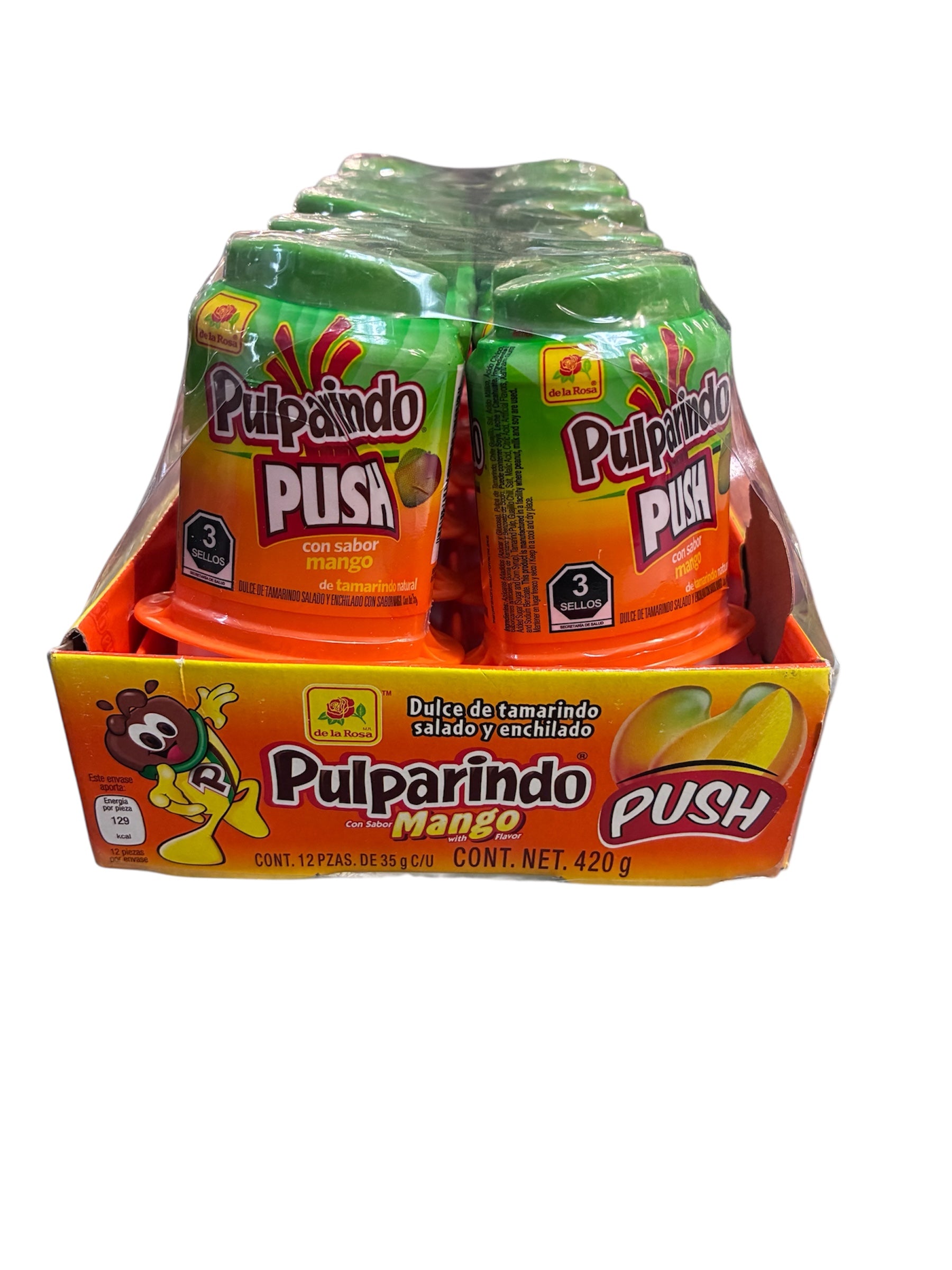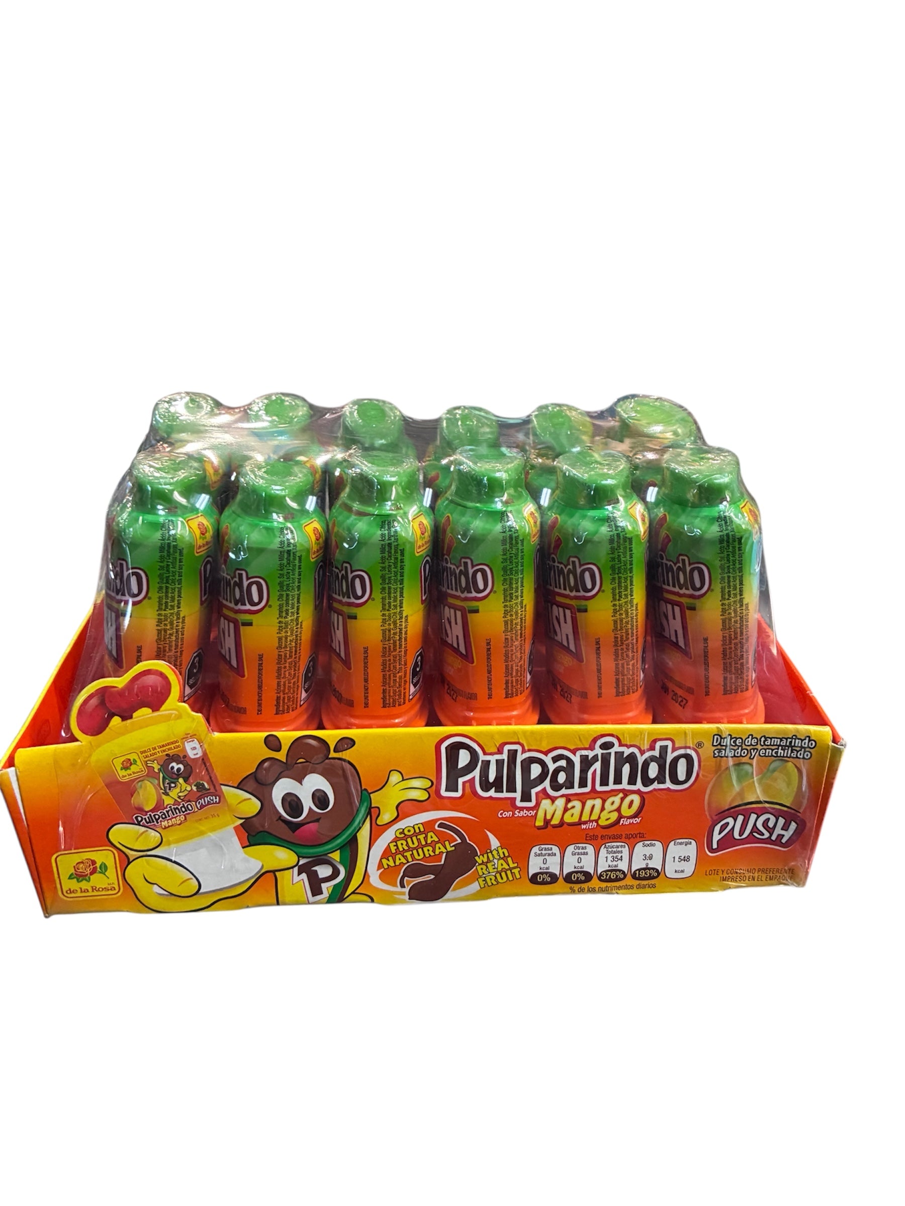 Indulge in the exquisite allure of Pulparindo Push, a distinctive confection that harmoniously marries the tangy essence of tamarind with the luscious sweetness of mango, all enveloped in a subtle embrace of chili. This sophisticated candy transcends the ordinary, offering a sensory journey that delights the palate with each luxurious taste.